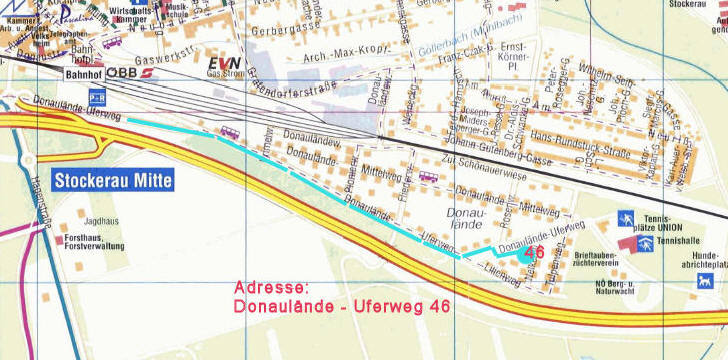 über die A2 bis "Stockerau Mitte", dann lt. obigen Plan